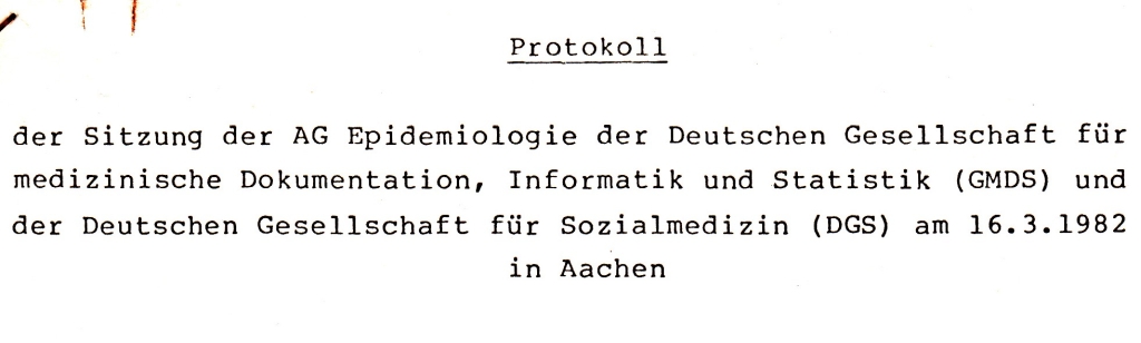 16.3.1982, Aachen, Sitzung der AG Epidemiologie der Deutschen Gesellschaft für Medizinische Dokumentation, Informatik und Statistik (GMDS) und der Deutschen Gesellschaft für Sozialmedizin (DGS)