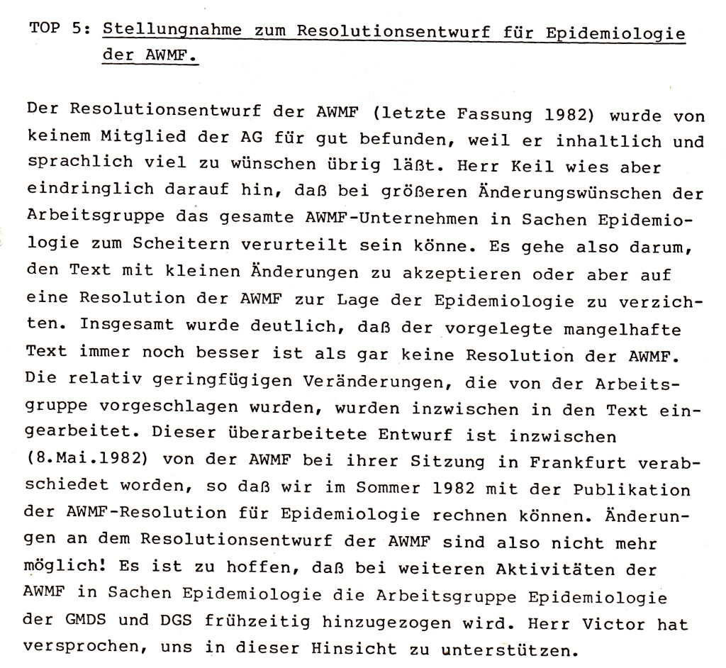 - 5: Stellungnahme zum Resolutionsentwurf für Epidemiologie der AWMF