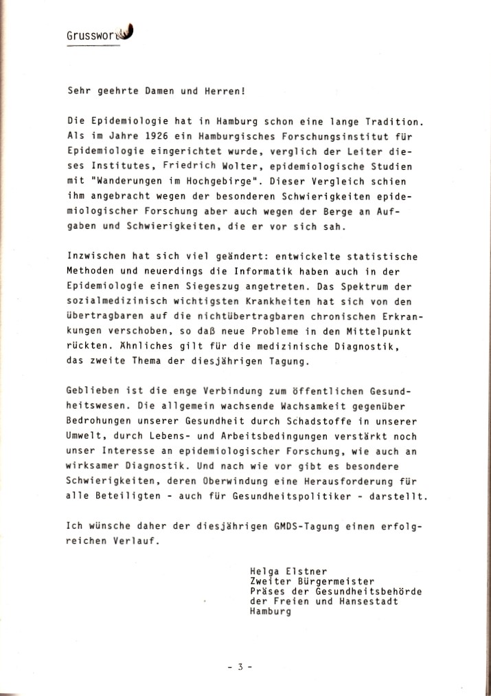 - Helga Elstner, Zweiter Bürgermeister, Präses der Gesundheitsbehörde der Freien und Hansestadt Hamburg