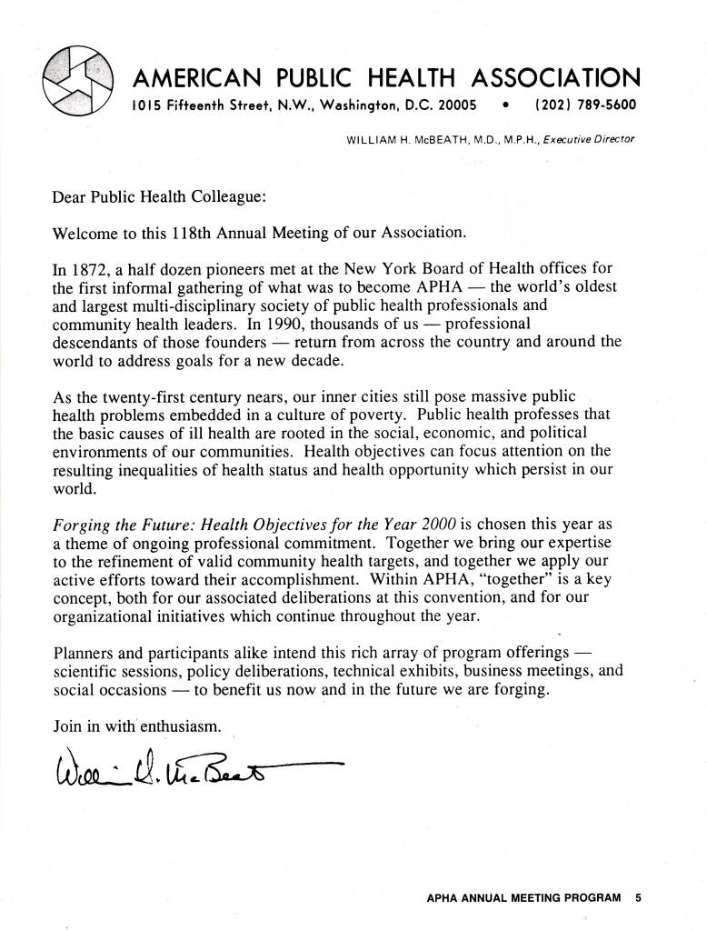 30.9.-4.10.1990, New York, 118th APHA Meeting: Forging the Future: Health Objectives for the Year 2000