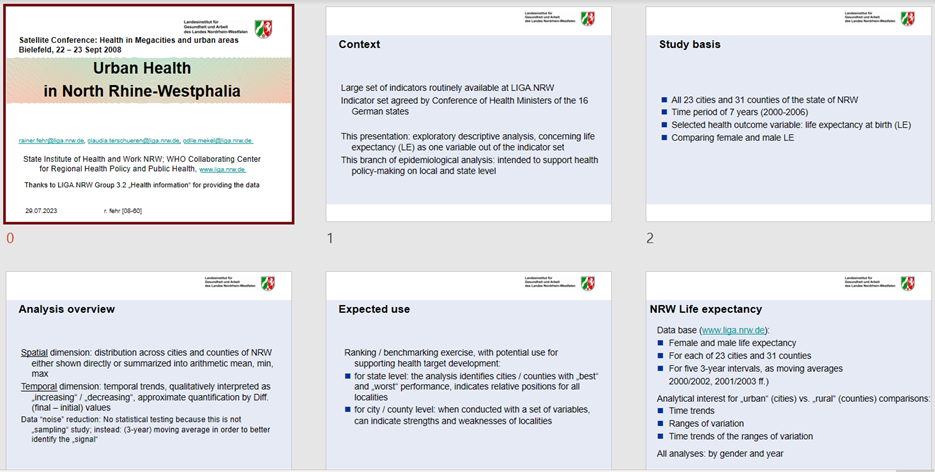 - Fehr, R., Terschüren, C., Mekel, O. (2008): Urban Health in North Rhine-Westphalia. Programmheft, p.58 [08-60] Präsentation