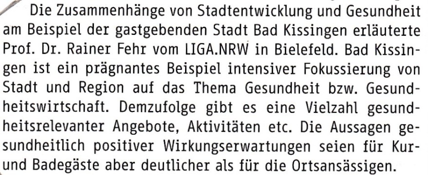 - R. Fehr, R. Welteke, O. Mekel: Stadtentwicklung und Gesundheit am Beispiel von Bad Kissingen [08-29]