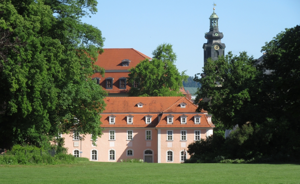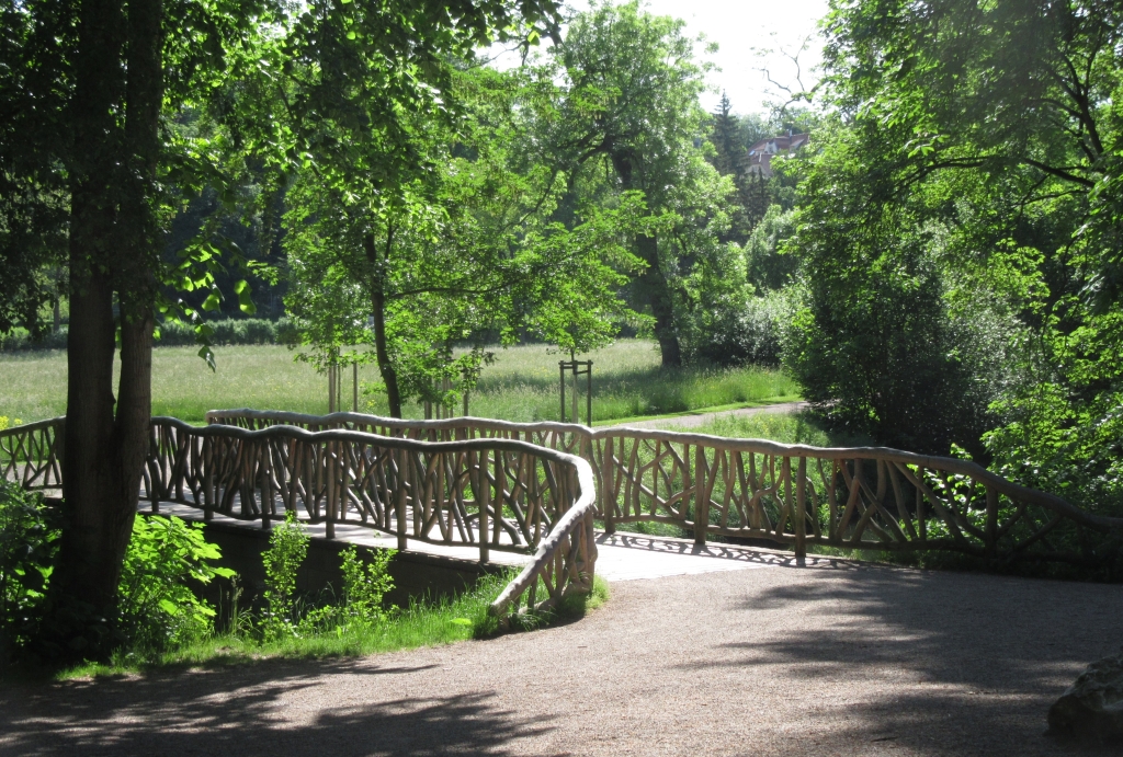 Burghoff I, Burghoff L (1982): Reisen zu Goethe. Wirkungs- und Gedenkstätten. VEB Tourist Verlag Berlin und Leipzig; Lizenzausgabe für Brockhaus Stuttgart. S.169: Weimar wurde Mitte des 16. Jahrhunderts Residenz des Herzogtums Sachsen-Weimar, blieb aber lange Ackerbürgerstadt und wuchs erst langsam zur Hofstadt, in der Luther und Cranach d. Ä. auftraten, in der die „Fruchtbringende Gesellschaft“ wirkte … S.191: Park an der Ilm, auch Goethepark genannt … Mit der ihm eigenen Beharrlichkeit machte sich Goethe mit Gärtnern und Handwerkern … ans Werk … S.192 … Rundgang … Ruine des Tempelherrenhauses … Borkenhäuschen …Felsentreppe mit Tor („Nadelöhr“) … Naturbrücke … Stern …