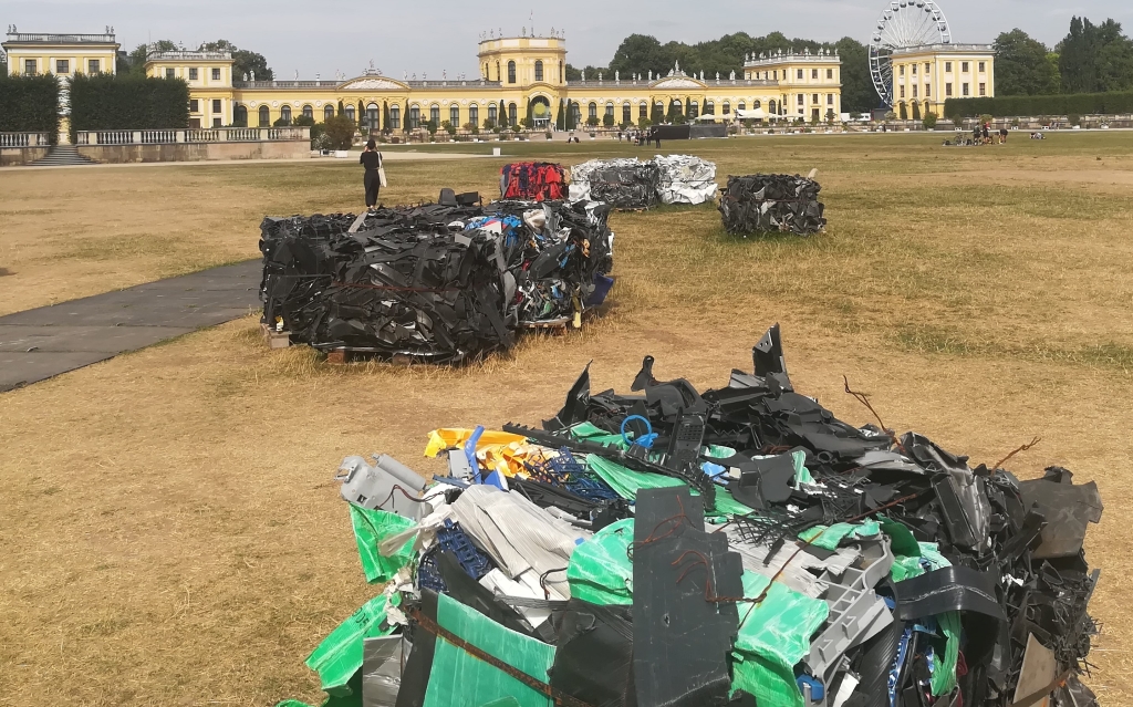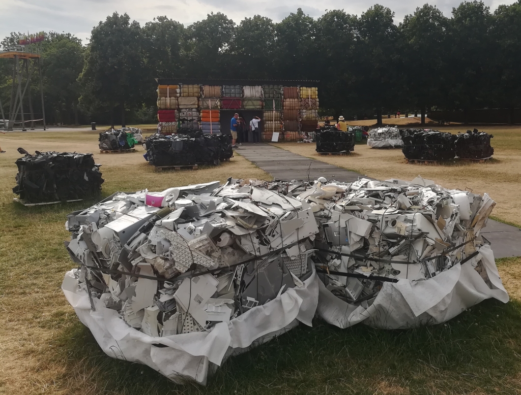 - Return to sender – Delivery details: “the mountain of litter which … is a current unending reality in Kenya and many African countries”/ “Kontext des Müllbergs …, der … in Kenia und vielen anderen afrikanischen Ländern eine nicht enden wollende Realität darstellt” (Fotos #06-08), The Nest Collective, Nairobi, https://documenta-fifteen.de/en/lumbung-members-artists/the-nest-collective/, Handbook, pp.198-199