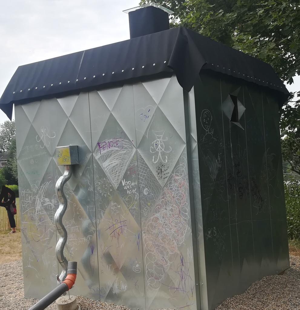 - Architecture uncomfortable workshop – The house of Councillor Krespel / Das Haus von Rat Krespel (D.E.Ghyczy, L. Szerderkenyi), “… transgressive and … world-transforming creativity characterized the titular character of the short story Councillor Crespel by … E.T.A. Hoffmann … which has been a source of inspiration for the Budapest-based architect duo” / “… grenzüberschreitende, … die Welt transformierende Kreativität kennzeichnet … die Titelfigur der Erzählung Rat Krespel des … Schriftstellers E.T.A. Hoffmann, die für das in Budapest ansässige Architekturduo … seit vielen Jahren eine Inspirationsquelle ist …“ (Source: Information board / Quelle: Infotafel); (Fotos #09-10), cf. www.archdaily.com/office/architecture-uncomfortable-workshop