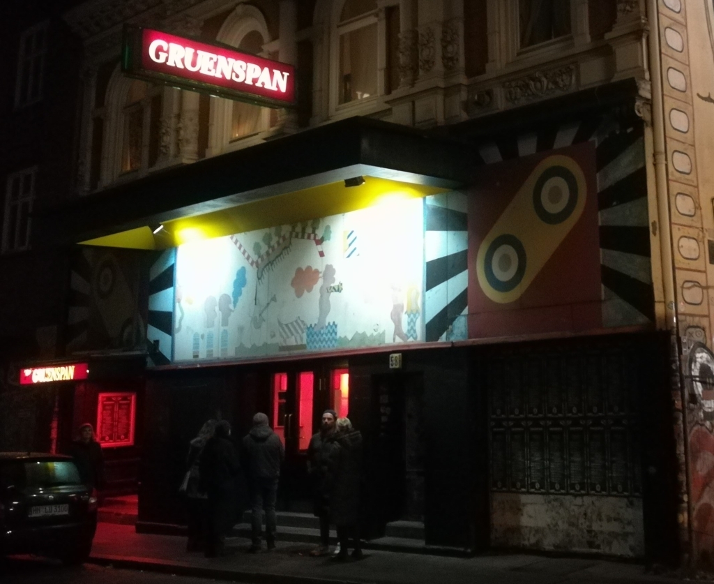 Grünspan, Große Freiheit… „Ein großer psychedelischer Popschuppen in zwei Etagen … Sehr gut gemacht … Weiße, blaue und rote Strobe Light Shots verwandeln die beiden Tanzflächen mit ihren im Rhythmus des ‚Philly Dog‘ zuckenden Hippie und Beattypen in eine irreale Szenerie … auch beliebt bei Studenten, jungen Intellektuellen, Kunstjüngern, der ganzen jungen Bohème“. Aus: Walter Stahl, Dieter Wien (1966/1969): Hamburg von 7 bis 7 – ein ungewöhnlicher Führer durch eine ungewöhnliche Stadt. Seehafen-Verlag Erik Blumenfeld, Hamburg (6. Aufl.), p.339.
