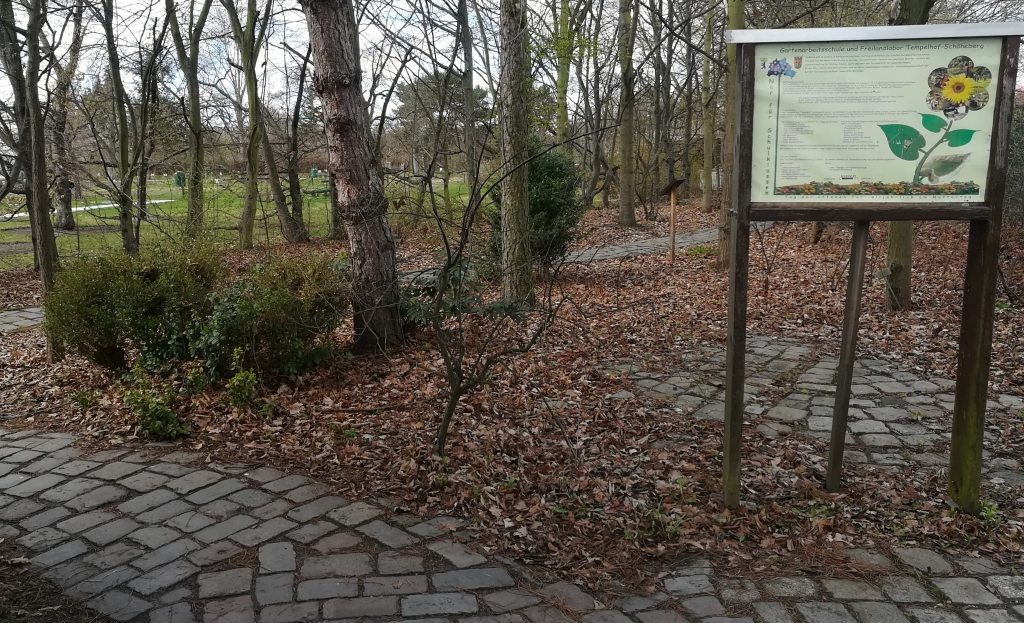 Berlin, Senatsverwaltung für Bildung, Jugend und Familie (2022): 100 Jahre Gartenarbeitsschulen in Berlin. Berliner Gartenarbeitsschulen 1920–2020, 100 Jahre grüne Lernorte in den Berliner Bezirken, 100 Jahre handlungsorientierter Unterricht. Broschüre, file:///C:/Users/mail/Downloads/100_jahre_gartenarbeitsschulen.pdf. p.17: Gartenarbeitsschule und Freilandlabor Tempelhof-Schöneberg … Auf einem großzügigen Gartengelände laden ein Weinberg und ein Baumlehrpfad, eine Schmetterlingsabteilung, ein Tier- und Spielhof sowie vieles mehr zur Erkundung ein …
