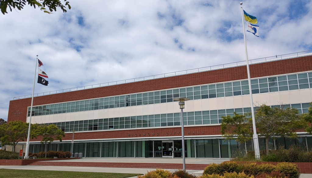 Richmond, CA, https://en.wikipedia.org/wiki/Richmond,_California: … a city in western Contra Costa County … in the San Francisco Bay Area’s East Bay region … population … 116,448 as of the 2020 census … The Ohlone were the first inhabitants …, settling an estimated 5,000 years ago … At the onset of World War II, … four … Shipyards were built along Richmond’s waterfront, employing thousands of workers, many migrating to Richmond from other parts of the country after being recruited …When the war ended the shipyard workers were no longer needed … a decades-long population decline ensued … By 1960 much of the temporary housing built for the shipyard workers was torn down … In the 1970s, the Hilltop area was developed in Richmond’s northern suburbs, further depressing the downtown area as it drew retail clients and tenants away to the large indoor Hilltop Mall, which opened in 1976 … In 2006, the city celebrated its centennial. This coincided with the … streetscaping project of Macdonald Avenue … designated the city’s “Main Street District” by the state of California … The city has in the past suffered from a high crime rate … By 1991, the city’s all-time high of 62 homicides … was seven times the national average … In 2007, Richmond opened a program to prevent gun violence, the Office of Neighborhood Safety … The program … analyzes public records to determine “the 50 people in Richmond most likely to shoot someone and to be shot themselves.” It … offers selected individuals “a spot in a program that includes a stipend to turn their lives around” … Richmond is no longer ranked as a “most dangerous” city, in either California or the United States … … There are 17 emergency warning sirens in the city … tested on the first Wednesday of every month, at 11 am, [e.g., 3 May 2023] and are usually used to warn of toxic chemical releases from the Chevron Richmond Refinery … annual … Cinco de Mayo celebrations … attracts thousands …The Richmond Police Department, Fire Brigade, United States Marine Corps and other organizations participate in the parade …