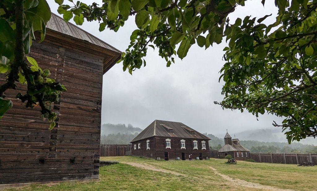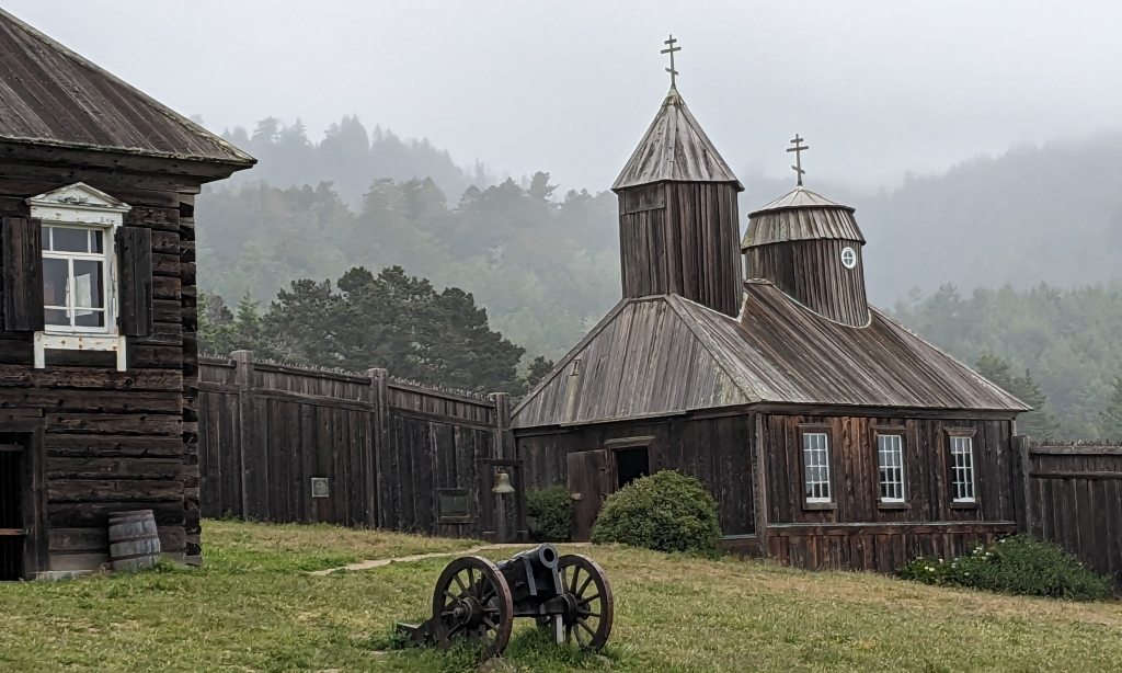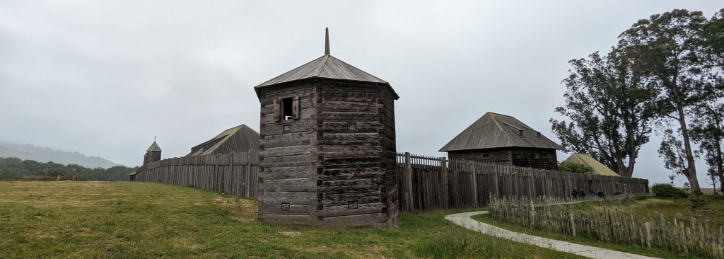 Fort Ross, https://de.wikipedia.org/wiki/Fort_Ross (18.3.2023): … 1812 bis 1841 eine Niederlassung der Russisch-Amerikanischen Handelskompagnie … im heutigen Sonoma County … südlichster befestigter Außenposten Russisch-Amerikas … Stützpunkt für die Pelztierjagd … Versorgung von russischen Handelsniederlassungen in Alaska mit Lebensmitteln … Mit dem Rückgang der Seeotterbestände und unzureichenden Erfolgen in der landwirtschaftlichen Nutzung … seit den 1830er Jahren zunehmend … unwirtschaftlich … – … 1812 begann Iwan Kuskow mit 25 Russen … und rund achtzig Ureinwohnern Alaskas … mit dem Bau des Forts. In der Konstruktion folgten die russischen Handwerker dem Vorbild der traditionellen Holzgebäude Sibiriens …