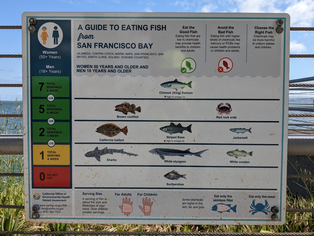 Tran Pham H, Chumney L (2023): Health Advisory and Guidelines for Eating Fish from San Francisco Bay (Alameda, Contra Costa, Marin, Napa, San Francisco, San Mateo, Santa Clara, Solano, and Sonoma Counties). Updated April 2023. Fish, Ecotoxicology, and Water Section / Pesticide and Environmental Toxicology Branch, Office of Environmental Health Hazard Assessment, California Environmental Protection Agency, https://oehha.ca.gov/media/downloads/advisories/fishadvisorysfbayreport2023.pdf: