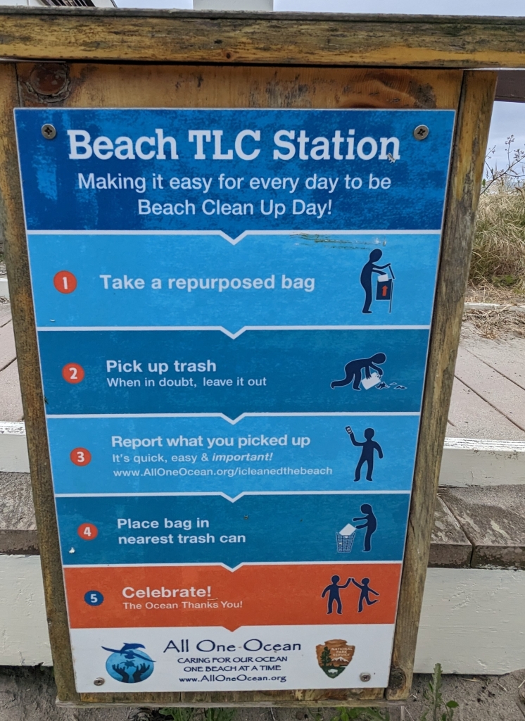 All One Ocean, www.alloneocean.org/ourfocus-397685-763912.html: Healthy water for all is our end goal. We rely on it for drinking water, food, agriculture, and recreational activities. Animals rely on it for survival. Human pollution is capable of harming all of us, while also contributing to climate change. Through education and simple daily acts of environmental consciousness, we can get closer to our goal … One Ocean’s Beach Cleanup Stations (BCUS) are permanent, community-generated, and individually managed. They’re great for an individual, family, or small or large group to adopt … Mounted at the entrances to beaches and watersheds, BCUS hold visitor-provided bags that beachgoers use to collect trash … feature clear signage, instructing beachgoers how to use the stations and educating them about the dangers of marine litter …