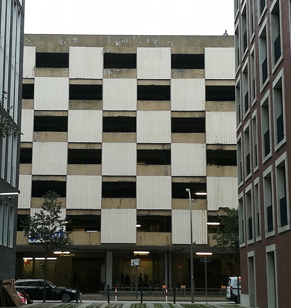 This multi-storey car park (Neue Gröninger Straße 12) is located in the heart of Hamburg’s old town, not far from the town hall and the historic warehouse district. In Hamburg, affordable housing space, a prerequisite for healthy living, is in short supply. Current efforts to transform the car park building, sustainably, into social housing and affordable avant-garde workspace will hopefully be successful, https://groeninger-hof.de/.