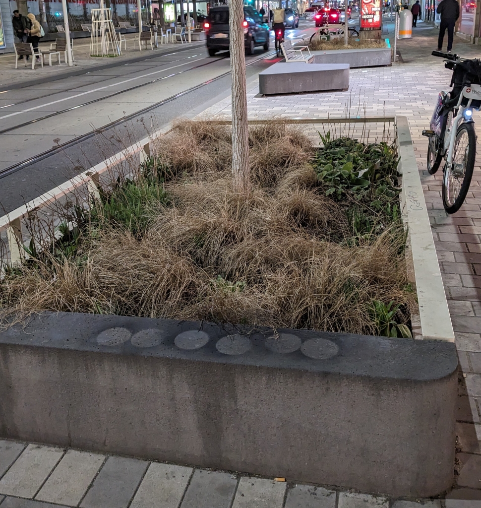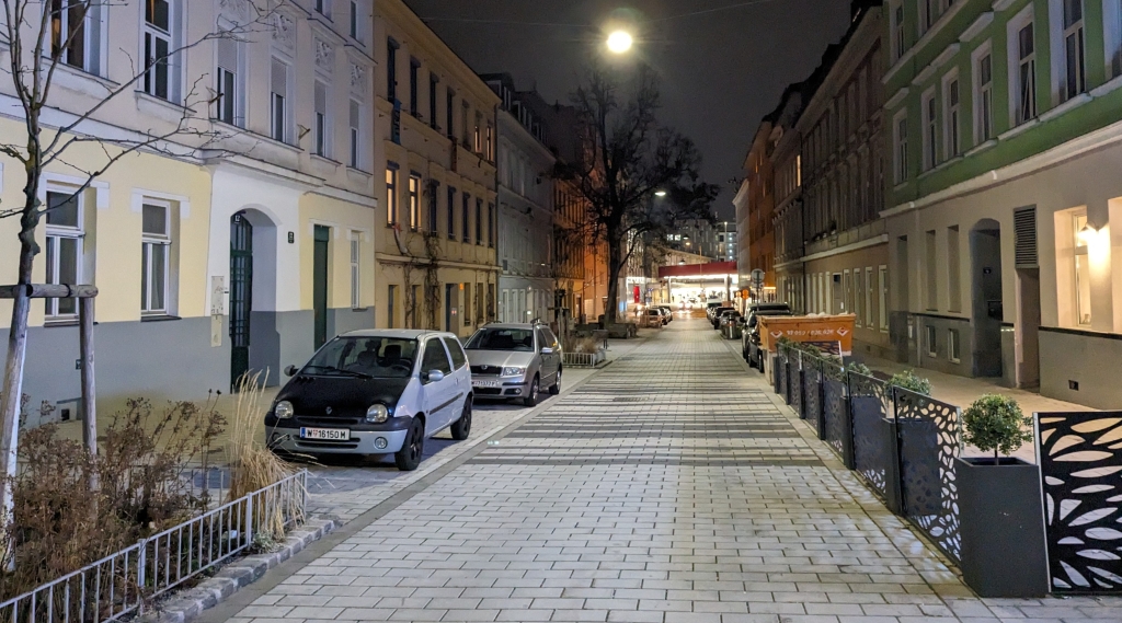 www.wien.gv.at/verkehr/strassen/coole-strassen-plus.html: 15., Pelzgasse … Bauzeit … 2020. Als deutliche Kennzeichnung des verkehrsberuhigten Bereichs wurde die gesamte Straße gepflastert und niveaugleich errichtet … Barrierefreiheit … Konsumfreie Sitzgelegenheiten, ein Spieltisch, ein Trinkbrunnen und ein Wasserspiel in Form von bodenebenen Sprühdüsen … neue Baumpflanzungen, eine Fassadenbegrünung und Bereiche für “Garteln ums Eck” … erstmalig für Wien in einem innerstädtischen Bezirk ein innovatives System zur Verbesserung des Lebensraums der Bäume sowie des Regenwasser-Managements – das sogenannte “Stockholm-System” oder “Schwammstadt-System” – angewendet … Dadurch wird einerseits mehr Luft und Wasser für die Bäume angeboten …, andererseits … die Kanalisation insbesondere bei Starkregen-Ereignissen entlastet. Dazu … unterhalb der befestigten Oberflächen im Straßenraum eine Schicht aus grobkörnigem Schotter sowie wasserspeichernden Materialien … angelegt. Die Bäume … haben … direkten Kontakt zu den Schotter-Schichten und können diese durchwurzeln … (Vgl. Furchtlehner et al. 2014, p.205)