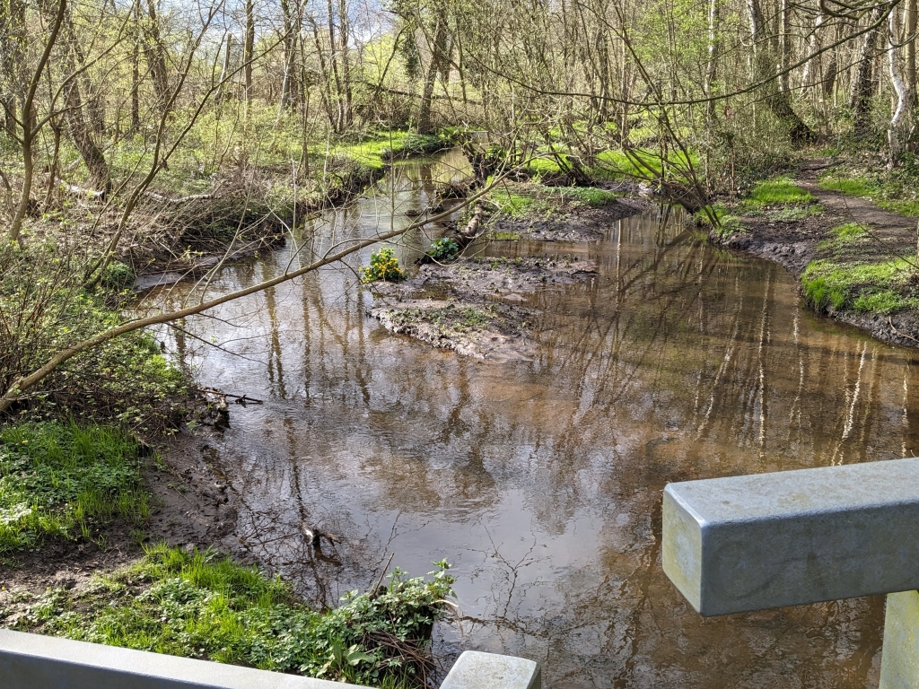 Kollau, https://de.wikipedia.org/wiki/Kollau_(Tarpenbek): … knapp acht Kilometer langer Bach im Norden Hamburgs … entspringt im Stadtteil Schnelsen, durchfließt Niendorf und Lokstedt und mündet an der Grenze zu Groß Borstel in die Tarpenbek … Die Hamburger Biotopkartierung beschreibt die Kollau als „naturnahen Bach mit Beeinträchtigungen“. Auf der neunstufigen Skala der Biotopbewertung erreicht sie … die Stufe sechs. Beeinträchtigt … besonders durch die Regulierung: Die Ufer sind gerade, zum Teil mit steilen Böschungen …