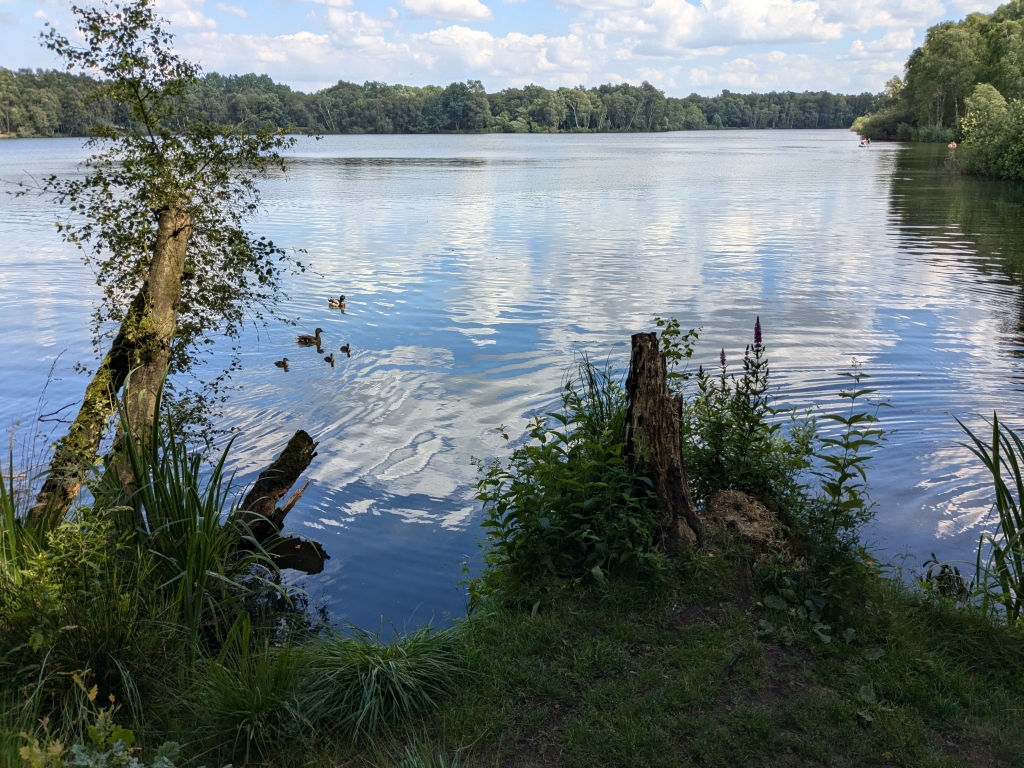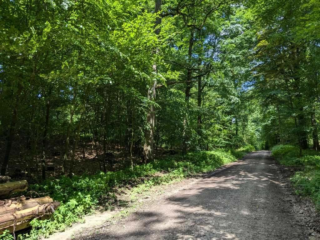 Tour: Winterhude -> Bhf. Dammtor, per S-Bahn nach Buxtehude (Landkreis Stade). Auf „Hamburger Radrunde“ nach SO via Eilendorf, Immenbeck, an Ovelgönne vorbei, Wulmstorf (Landkreis Harburg), Schwiederstorf („Achtung! Wolf-Streifgebiet – Hunde anleinen und Kinder beaufsichtigen!“), Rosengartenstraße (schneller und lauter Autoverkehr, aber Radweg vorhanden), Regionalpark Rosengarten (Hinweis auf Buchenwälder), Abzweigung nach NO zwischen Hülsenberg und Diebeskuhlen nach Vahrendorf-Siedlung und Gottorf-Grund, weiter nach Tötensen, im W der Sunderberge nach S: Klecken, nach O: Lindhorst, Seeve-Brücke, Horster Mühle, vorbei an den Hallonen (höchste Erhebung in der Gemarkung Maschen), Maschener See; in Maschen Einkehr, entlang der Bahnstrecke nach Harburg; zurück mit Sbahn bis Bhf. Dammtor -> Winterhude. Radelstrecke ca. 63 km, dabei Querung von B73 (bei Buxtehude) und 5mal Autobahn.