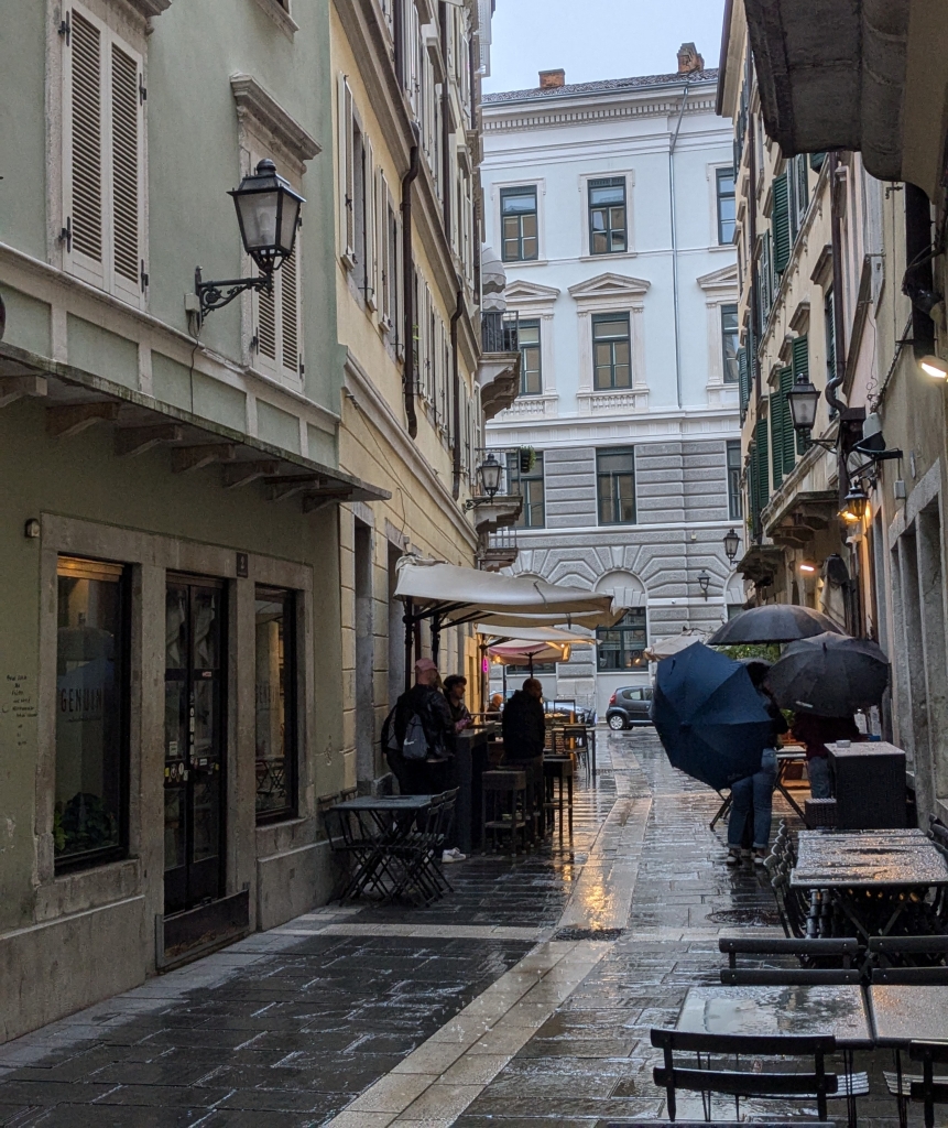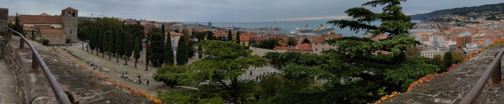 Trieste, https://en.wikipedia.org/wiki/Trieste: … capital … of the autonomous region of Friuli-Venezia Giulia … located at the head of the Gulf of Trieste, on a narrow strip of Italian territory lying between the Adriatic Sea and Slovenia …The city has a long coastline and is surrounded by … karstic areas … belonged to the Habsburg monarchy from 1382 until 1918 … Trieste was its most important seaport. As a prosperous trading hub in the Mediterranean region, Trieste grew to become the fourth largest city of the Austro-Hungarian Empire (after Vienna, Budapest, and Prague). At the turn of the 20th century, it emerged as an important hub for literature and music … the Free Territory of Trieste became a major site of the struggle between the Eastern and Western blocs after the Second World War … intersection of Latin, Slavic and Germanic cultures … home to diverse ethnic groups and religious communities … A scholarly area, Trieste has the highest percentage of researchers, per capita, in Europe … Città della bora (“City of the bora”), Città del vento (“City of Wind”), “Vienna by the sea” and “City of Coffee” are epithets used to describe Trieste.