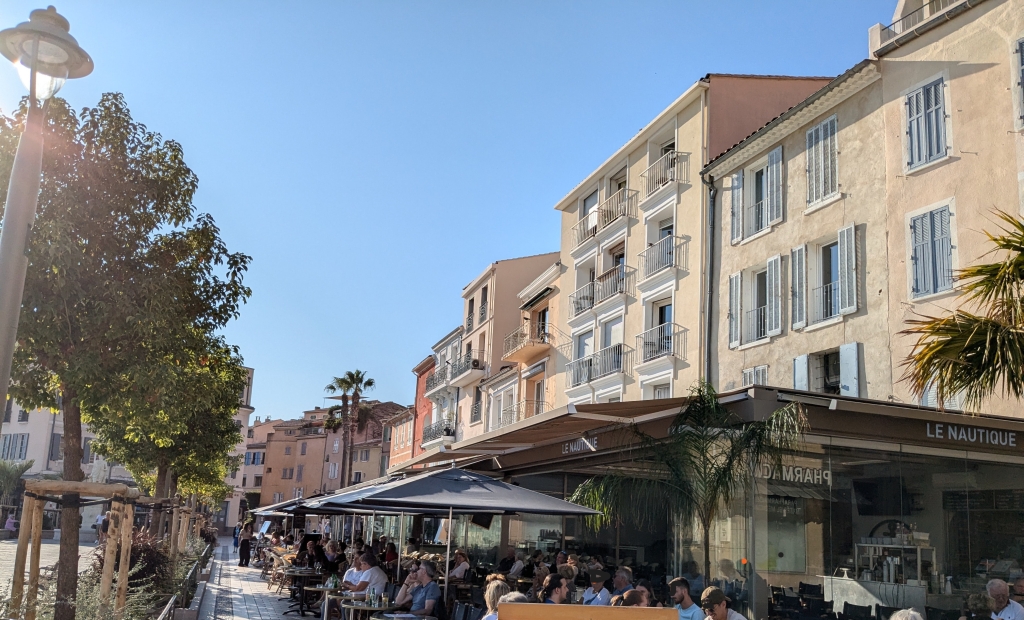 Sanary-sur-Mer, https://en.wikipedia.org/wiki/Sanary-sur-Mer: a commune … in the Provence-Alpes-Côte d’Azur region, … 49 km … southeast of Marseille … Literary Sanary: With the rise of Nazism in the early 1930s, a great number of German writers and intellectuals left Germany and settled here … Patronised by Jean Cocteau and his coterie, Sanary had already drawn Aldous Huxley, who wrote Brave New World at Villa Huley, … and his wife, Maria; they attracted other English visitors … The German expatriates clustered around Thomas Mann and his large family … Ludwig Marcuse in his book “Mein Zwanzigstes Jahrhundert” (p. 160) wrote about Sanary: “Wir wohnten im Paradies – notgedrungen“, meaning “We lived in paradise – against our will”. “If one lives in exile,” wrote Hermann Kesten, “The café becomes at once the family home, the nation, church and parliament, a desert and a place of pilgrimage, cradle of illusions and their cemetery… In exile, the café is the one place where life goes on.” With the declaration of war in 1939, the French government treated these exiles as enemy aliens and interned some of them in camps …, and eventually some were sent to Auschwitz. After the liberation of France, the whole episode went ignored until the 1990s when … a commemorative plaque was unveiled, and literary itineraries were signposted …