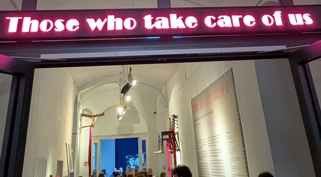 - Care … entwirft … ein universelles Netzwerk der Verbundenheit und Fürsorge, das verschiedene Generationen, Kulturen und Lebensformen umfasst … / Care … creates a universal network of connection and care that spans generations, cultures and life forms …