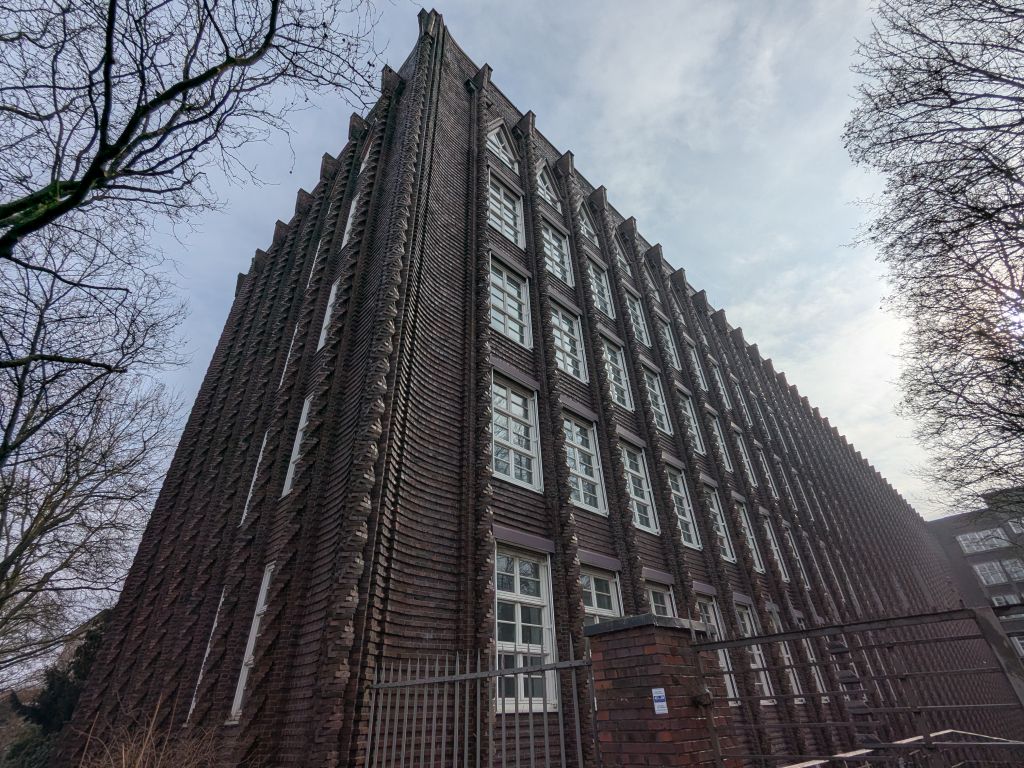 - Haus Neuerburg, Walddörferstraße 103 (Wandsbek). https://deu.archinform.net/projekte/78309.htm: Die ehemalige Zigarettenfabrik wurde in den 1920er Jahren für das Unternehmen Haus Neuerburg erbaut. Diese Firma wurde späer von Reemtsma Cigarettenfabriken übernommen … von der Deutschen Telekom genutzt … www.hamburg.de/leben-in-hamburg/bezirke-hamburg/stadtteile-bezirk-wandsbek/wandsbek-377106: … bedeutendes Industriedenkmal. Das „Haus Neuerburg“ … ein Paradebeispiel für ein architektonisch … gelungenes Fabrikgebäude. Die reich verzierte, expressionistische Fassade aus rotem Klinker entstand 1927 nach Plänen des … Architekten Fritz Höger, der auch das … Chilehaus im Kontorhausviertel entwarf … Infotafel: … 1924-25 nach Entwurf von Klophaus & Schoch errichtet. 1926-27 folgte nach Plänen von Fritz Höger der Südflügel … Stahlbeton-Skelettbau … mit Klinkern verkleidet. An dem Bau von Höger sind die expressionistischen Klinkereffekte auf die Spitze getrieben …