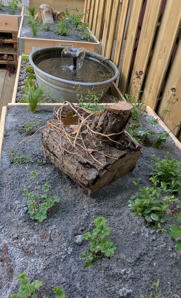 - Stadtgarten 09: SPIEL- & SCHAUKELGLÜCK, Häusing … Hochbeete, bunte Baumstämme und ein Quellstein prägen den Garten …