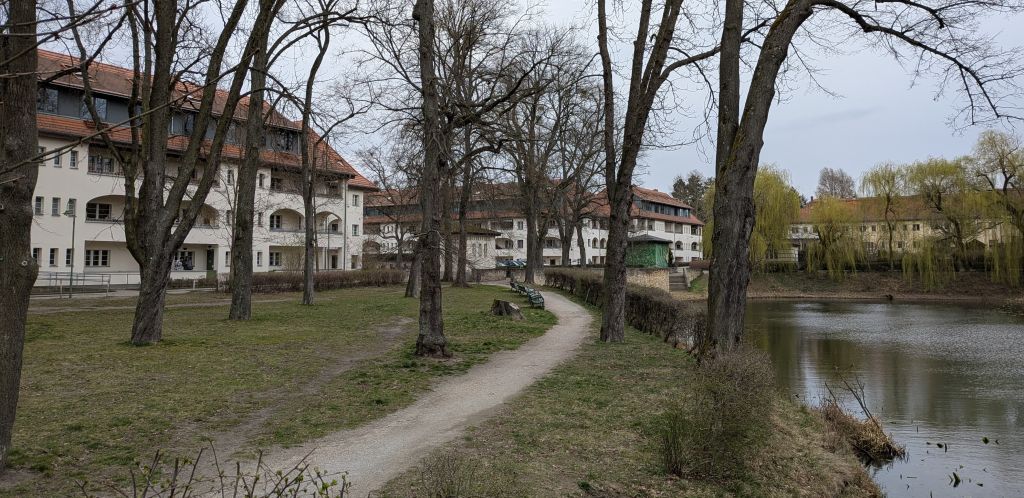 https://de.wikipedia.org/wiki/Siedlung_Lindenhof: … Wohnsiedlung …, die in den 1920er Jahren erbaut wurde und sich an der Idee der Gartenstadt orientierte … … unter Leitung des damaligen Schöneberger Stadtbaurats Martin Wagner entwickelt … Pioniersiedlung … zeichnete sich … durch guten Wohnraum zu günstigen Konditionen, zahlreiche Gemeinschaftseinrichtungen und die Möglichkeit der Selbstversorgung in Hausgärten aus … Mit den Planungen für ein „Ledigenheim“ war auch Bruno Taut an der Siedlung beteiligt … Die historische Siedlung wirkt aufgrund ihrer Lage und Architektur wie eine Insel innerhalb der Großstadt … zeichnet sich … durch seine parkähnlichen Freiflächen mit altem Baumbestand und eigenem Weiher aus, der aus einem eiszeitlichen Pfuhl entstanden ist … umfasst 232 Häuser mit insgesamt 1262 Wohnungen; dabei handelt es sich um 163 Mehr- und 69 Einfamilienhäuser … rund 2500 Bewohner (Stand: 2016) … / [DeepL:] … a housing estate .., built in the 1920s and inspired by the garden city concept … Tempelhof-Schöneberg district … developed under the direction of Martin Wagner, then head of urban planning for Schöneberg … pioneering housing estate … was characterized … by good living space at affordable prices, numerous community facilities, and the opportunity for self-sufficiency in home gardens … Bruno Taut was also involved in the estate’s planning for a “bachelor’s home” … Due to its location and architecture, the historic settlement appears like an island within the metropolis … is characterized … by its park-like open spaces with mature trees and its own pond, which originated from a glacial pool … comprises 232 buildings with a total of 1,262 apartments; of which 163 are apartment buildings and 69 are single-family homes … approximately 2,500 residents (as of 2016) …