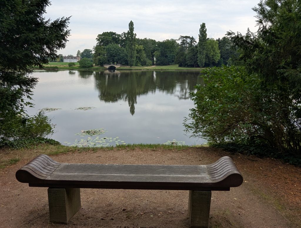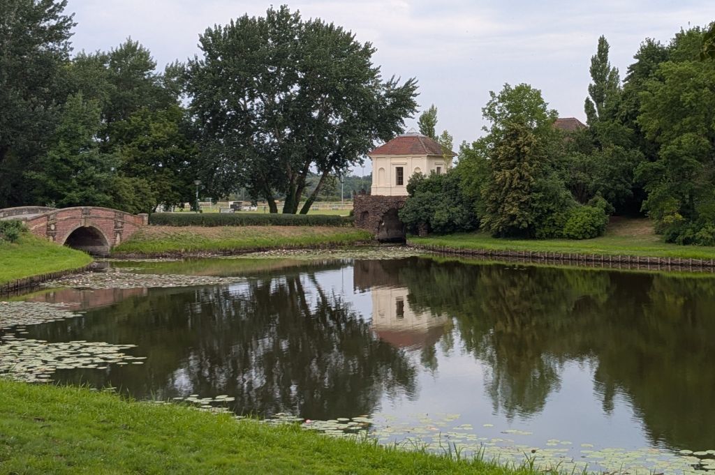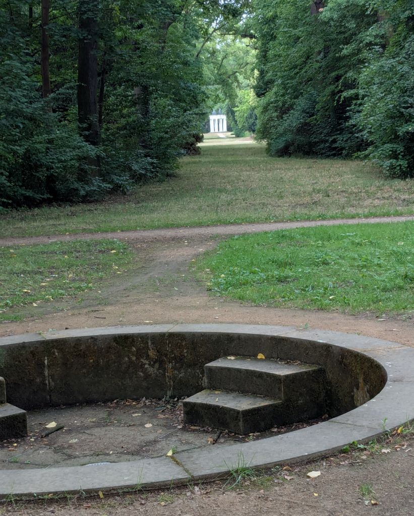 Wörlitzer Park (15.7.25), https://de.wikipedia.org/wiki/W%C3%B6rlitzer_Park: … ein Landschaftsgarten in Wörlitz im Landkreis Wittenberg, angelegt ab 1769 im englischen Stil … unter der Regentschaft von Fürst Leopold III. Friedrich Franz von Anhalt-Dessau (1740–1817) … am Wörlitzer See, einem Altarm der Elbe … gehört … zum Dessau-Wörlitzer Gartenreich, einer UNESCO-Welterbestätte … gilt als einer der ersten und zählt zu den größten deutschen Landschaftsparks nach englischem Vorbild. Gleichzeitig hatte der Park einen Bildungsauftrag, der sich über Architektur, Gartenkunst und auch Ackerbau erstreckte … Das Schloss ist der erste klassizistische Schlossbau Deutschlands … Im Park gibt es insgesamt 17 Brücken. Jede … ist in einem anderen Stil gebaut … / [DeepL:] … a landscape garden in Wörlitz in the district of Wittenberg, laid out from 1769 in the English style … under the regency of Prince Leopold III Friedrich Franz von Anhalt-Dessau (1740-1817) … on Lake Wörlitz, an oxbow lake of the Elbe … belongs … to the Dessau-Wörlitz Garden Kingdom, a UNESCO World Heritage Site … is considered one of the first and is one of the largest German landscape parks based on the English model. At the same time, the park had an educational mission that extended to architecture, horticulture and agriculture … The palace is the first classicist palace building in Germany … There are a total of 17 bridges in the park. Each … is built in a different style …