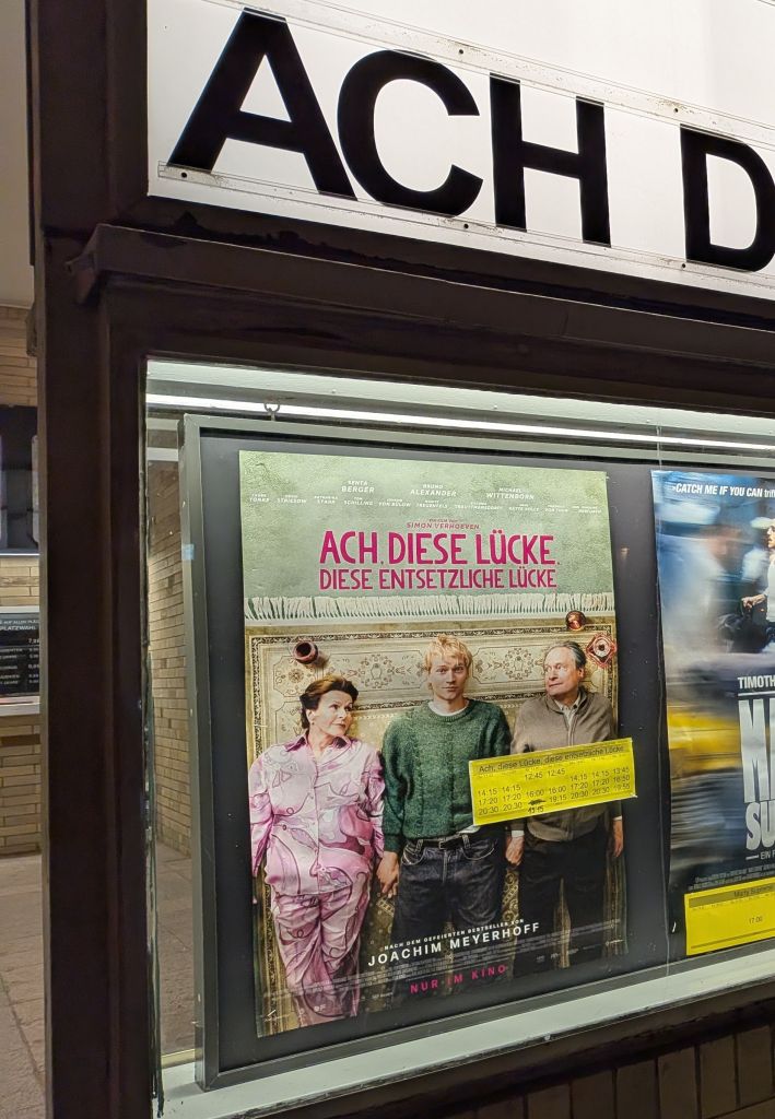 https://www.cinemaxx.de/kinoprogramm/holi-hamburg/film/ach-diese-lucke-diese-entsetzliche-lucke: Startdatum: 29. Jan. 2026, Laufzeit: 2hr 17minutes, Besetzung: Senta Berger, Michael Wittenborn, Bruno Alexander, Jella Haase, Laura Tonke, Devid Striesow.