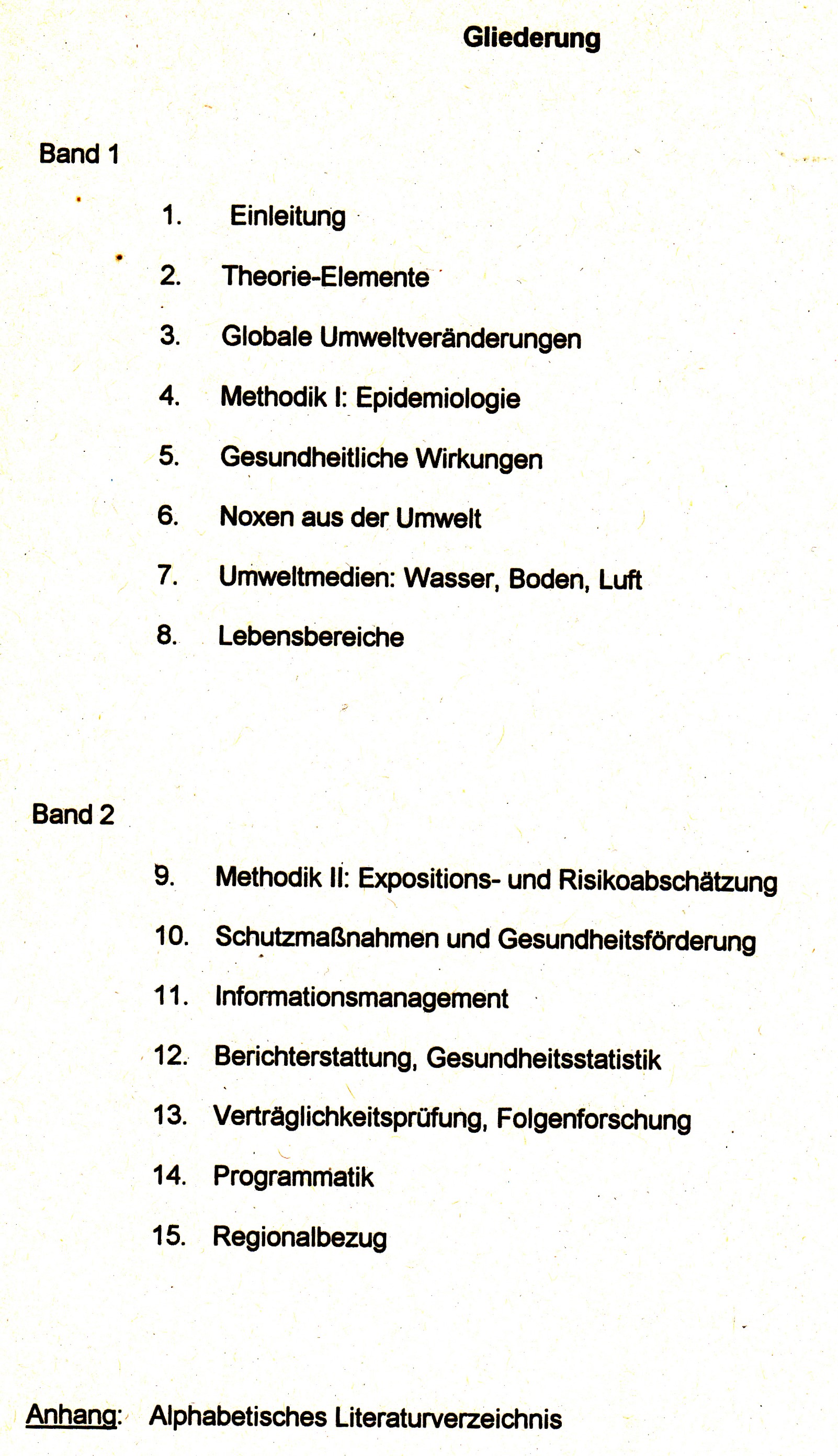 1995 Concept for the unit “Environment and Health” / Konzept für den Arbeitsbereich “Umwelt und Gesundheit”