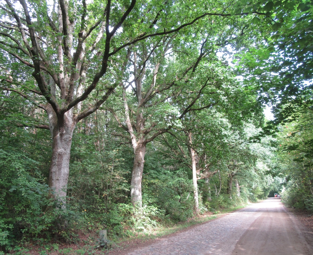 - Sachsenwaldstraße; Rotenbek; Kuddewörde; Bille; Auf dem Hohenfelder Damm in die Hahnheide, bei Trittau, https://de.wikipedia.org/wiki/Trittau: …Gemeinde im Kreis Stormarn in Schleswig-Holstein … liegt im Stormarner Endmoränengebiet … bewegte Topographie … Höchste Erhebung ist der Kleine Hahnheider Berg mit 101,1 m ü. NHN … Trittau und die Hahnheide waren zu Beginn des 20. Jahrhunderts als Luftkurort ein beliebtes Ausflugsziel …