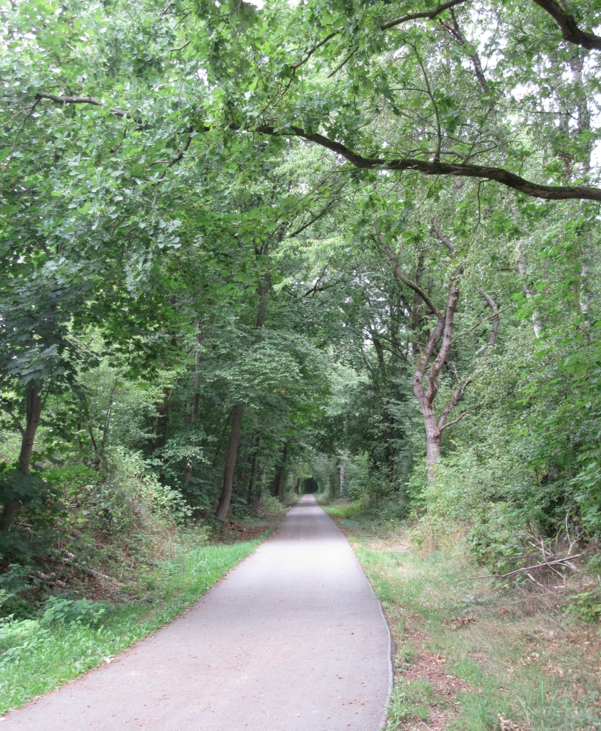 - Bahnradweg Route B, nahe Trittau: Richtung N (Bad Oldesloe), www.kreis-stormarn.de/freizeit-und-tourismus/bahnradwege/index.html: … drei Trassen … Im Herbst 2012 und Sommer 2013 … entlang der Wege Infoschautafeln aufgestellt, die an die Bahngeschichte der Wege erinnern … www.kreis-stormarn.de/freizeit-und-tourismus/bahnradwege/route-b-koeniglich-preussische-staatsbahn-trasse.html: Königlich Preußische Staatsbahn-Trasse Bad Oldesloe – Trittau … Eröffnung der Bahnstrecke: … 1887 … Stilllegung der Bahnstrecke: … 1976 … Ausbau als Radweg: um 1990 … – Unabsichtlich ein Stück auf Bahnradweg C (Richtung Glinde), dann korrigiert.